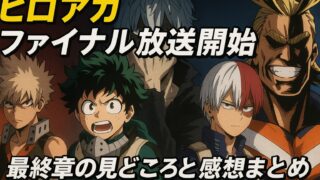 僕のヒーローアカデミア ヒロアカ ファイナル放送開始!最終章の見どころと感想まとめ 2025年10月4日、ついにTVアニメ『僕のヒーローアカデミア FINAL SEASON』の放送がスタートしました。約10年にわたり続いた物語が、ヒーローとヴィランの最終決戦という形でクライマックスを迎えます。本記事では、ヒロアカファイナル... 2025.10.05 僕のヒーローアカデミア