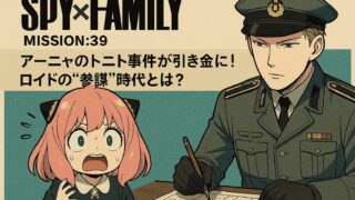 SPY×FAMILY 『SPY×FAMILY』MISSION:39感想|アーニャのトニト事件が引き金に!ロイドの“参謀”時代とは? アーニャにまさかの“トニト”!?ダミアンとの関係に進展アリ!?『SPY×FAMILY(スパイファミリー)』MISSION:39は、前半と後半で大きくテイストの異なる濃密な2本立てエピソードでした。前半ではイーデン校での騒動「〈雷トニト〉を回... 2025.10.12 SPY×FAMILY