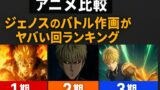 アニメ版『ワンパンマン』では、キングの登場シーンが非常に印象的に描かれています。