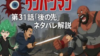 アニメ『ワンパンマン』第31話「後の先」では、Z市に集結したヒーローたちと怪人協会との全面戦争がいよいよ本格化します。次々と現れる強敵に対し、A級以下のヒーローたちは連携して応戦し、S級ヒーローたちも参戦。戦況は一気に緊迫の度を増していきま...