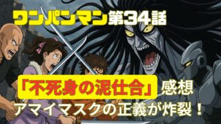 ワンパンマン第34話「不死身の泥仕合」では、ゾンビマンと吸血鬼バンパイアとの凄惨な戦い、そしてアマイマスクの圧倒的な正義が描かれました。本記事では、ゾンビマンの不屈の戦いぶりと、アマイマスクの非情な覚悟、そしてその他のキャラたちの見せ場につ...