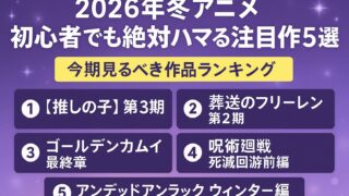 冬は恋が始まる季節。そんな時期にぴったりなのが、青春・恋愛アニメ。 2026年冬アニメには、心が温かくなるラブストーリーや、甘酸っぱい青春劇が揃っています。 今回はその中でも、思わず胸がキュンとするような恋愛&青春アニメを5本に絞ってご紹介...