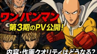 2025年秋に放送されるアニメ『ワンパンマン』第3期の第1弾PVがついに公開されました。「ヒーローvs怪人協会」の大規模な戦いを予感させる内容に、ファンの期待も高まっています。この記事では、ワンパンマン第3期の内容やPVから読み取れる作画ク...